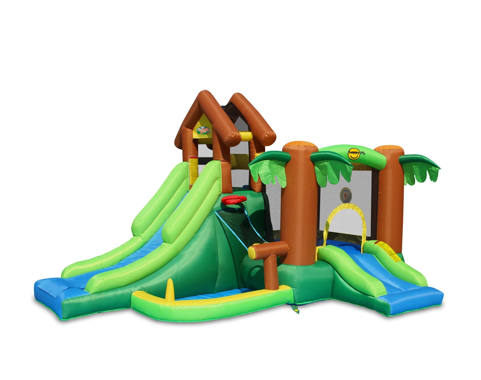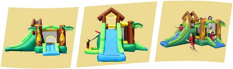 mini és nagy csúszdával, biztonsági hálóval és labda medencévelEz az ugrálóvár a kisebb és nagyobb gyerekeknek is igazi élményt nyújt dupla csúszdája miatt. A varázslatos dzsungel világába repíti a gyermekeket kialakításának köszönhetően.